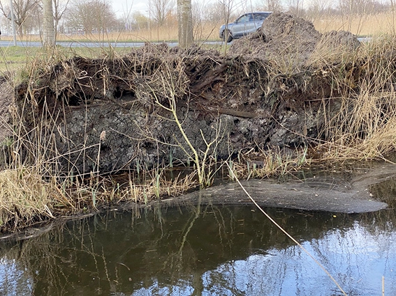 Maar er was ook een ploeg aanwezig in de Kadoelerscheg. Daar werd een nest gevonden dat bewoond is geweest afgelopen jaar. De IJsvogel werd regelmatig gespot rond de Kadoelerbreek en ook langs Zijkanaal I. Maar een zekere broedpoging of broedgeval kon nog niet worden vastgesteld. Met het vinden van het nest bij de Kadoelerbreek was er nu zekerheid. Het nest zat in een wortelkluit van een omgewaaide boom. De nestingang is gefatsoeneerd en nu maar afwachten of ze terugkomen. Ook langs de IJdoornlaan is een nest verbeterd, ook in de kluit van een omgewaaide boom. De hoop aarde die daar een tijdje geleden neergelegd was aan de rand van het orchideeënveldje zorgde wel voor flinke verontrusting bij ons. Later bleek dat dit dus was om de IJsvogelnestgelegenheid aldaar te verbeteren. Wij vroegen waarom dat niet gecommuniceerd had kunnen worden. Het antwoord was dat de gemeente niet alles wat ze doet kan vertellen aan bewoners of adviesgroepen. Ook de aanvoer van de aarde via een tractor had diepe sporen achtergelaten langs het orchideeënveldje. Volgens ons had de aarde ook gewoon via de IJdoornlaan naar die plek getransporteerd kunnen worden.