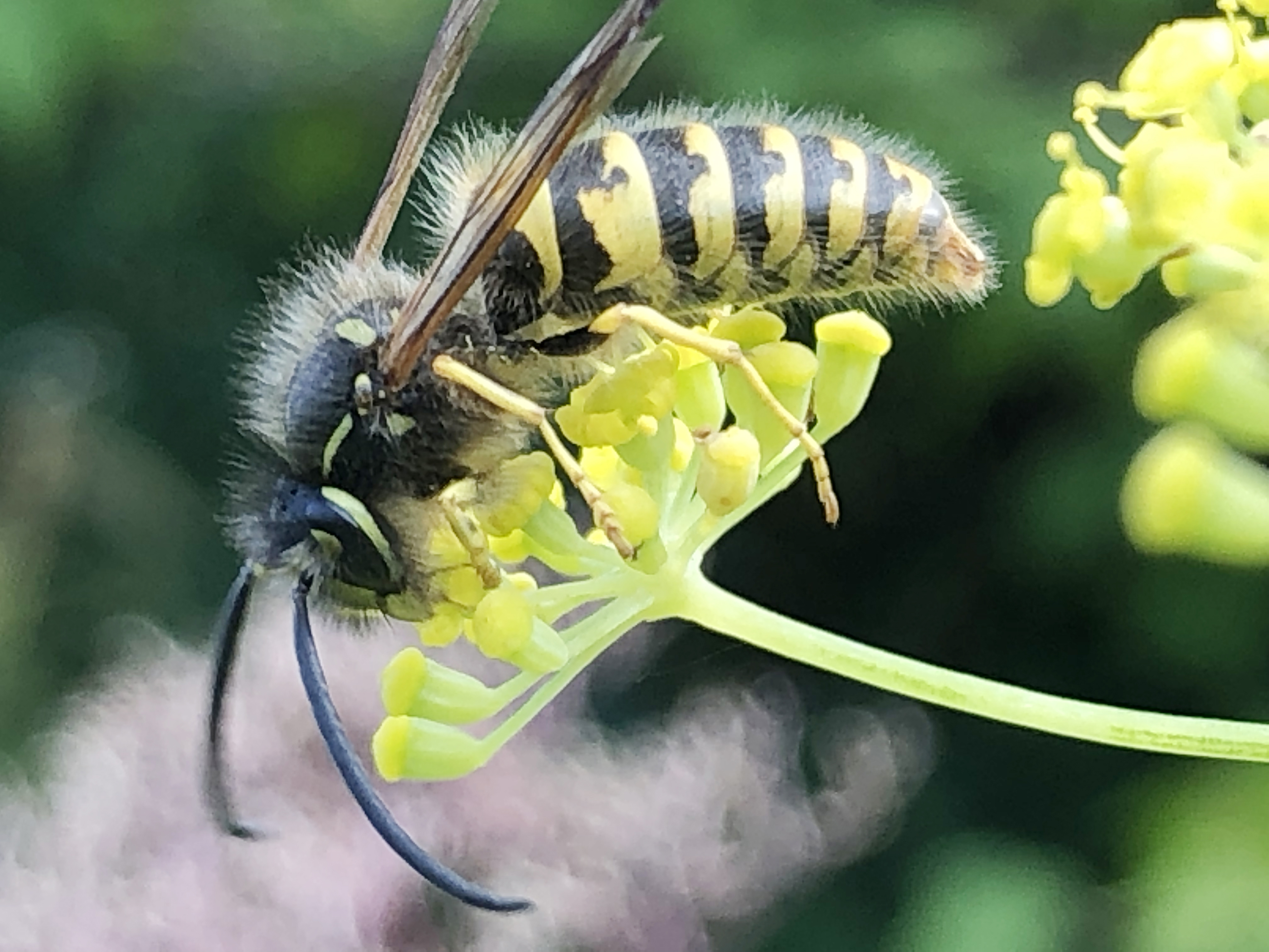 Eindelijk weer eens een Limonadewesp (of Gewone wesp) in de tuin gezien. Misschien pas de vijfde dit jaar? Het heeft waarschijnlijk met het natte voorjaar te maken, waardoor ondergrondse holen zijn ondergelopen. Wespen zijn belangrijke vliegen-, spinnen- en rupseneters. Misschien komen ze nog en is hun hoogtepunt, normaal in augustus, dit jaar vertraagd. Tel daarom mee en meldt je waarnemingen bij De Nationale Wespentelling van 17-25 augustus.
