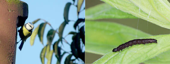 Kleine vogels zoals Koolmees en Pimpelmees zijn voor het grootbrengen van de jongen afhankelijk van het aanbod aan insecten en met name de eiwitrijke larven. De eitjes worden precies op tijd gelegd en uitgebroed op het moment dat er veel voedsel is van de juiste maat voor de bekkies! De insectenlarven profiteren van de uitlopende eiwitrijke jonge blaadjes aan bomen en planten. Door klimaatverandering (hogere temperaturen, vochtigheid/droogte) kan het uitlopen van bomen en planten te vroeg of te laat komen waardoor de juiste maat insectenlarven niet meer beschikbaar is. Een koud en nat voorjaar heeft dan een negatieve invloed op de voorplanting. Ook bij sommige vlindersoorten kan dat het geval zijn. Gebeurt zo’n verandering vaak dan is de kans groot dat betreffende dieren verhuizen naar een geschikte klimaatzone of geheel uitsterven.