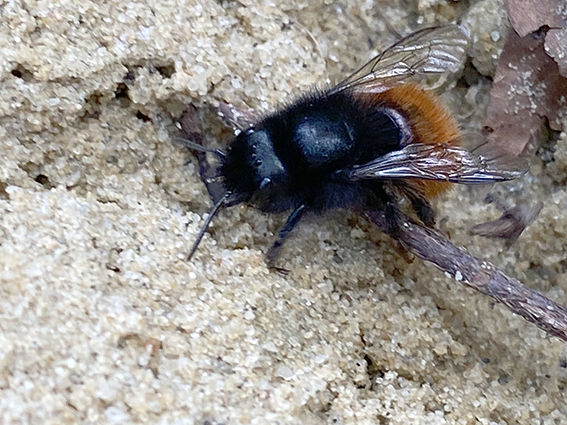 Bij een controle op 19 maart zijn er meteen op meerdere plekken gehoornde metselbijen gezien. Dat is goed nieuws! Vorig jaar werd deze bij voor het eerst sinds 200 gezien in de Kadoelerscheg. Dit jaar is hij al vaker waargenomen.
