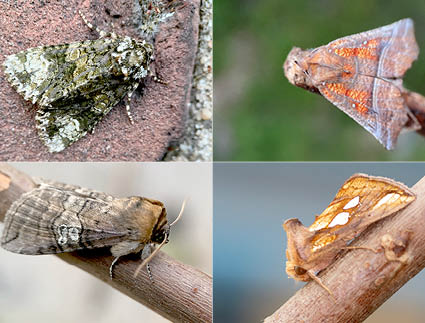 De rups van een bladroller rolt een blad op en leeft daarin. Grasmotten zitten met dicht ineengevouwen vleugels op grasstengels waardoor ze bijna niet opvallen. De tasters van sommige licht- (of snuitmotten) zijn uitgegroeid tot een lange snuit. Spanners zitten met geheel uitgeklapte vleugels op een vlakke ondergrond. Uilen hebben twee kenmerkende ‘uilvlekken’, de nier- en de ringvlek. Spinneruilen lijken erg op uilen, maar missen die typische ‘uilvlekken’.