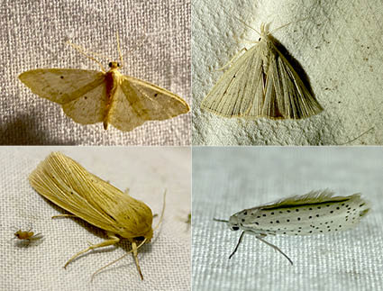 Natuurlijk kwamen we ook gewone motjes tegen. De meeste zijn vrij klein en niet zo spectaculair, zoals het Kroosvlindertje. Een zogenaamde micro(vlinder), een grasmot. Zodra er ergens Eendenkroos groeit, dan zie je dit motje zelfs overdag boven het kroostapijt dwarrelen. De rupsen leven van het kroos, maar ook van enkele andere waterplanten.