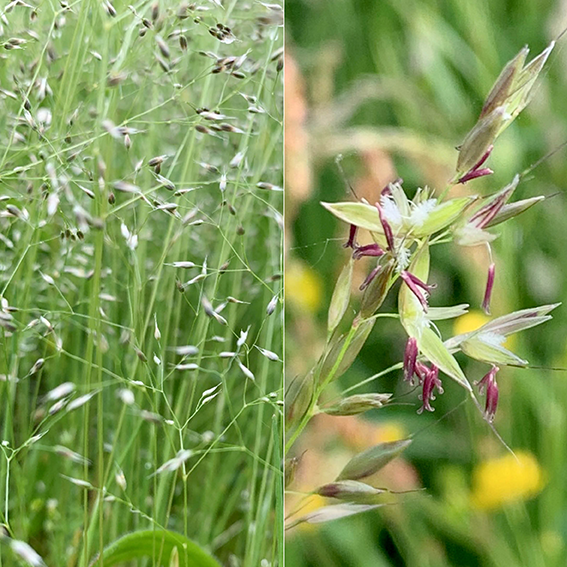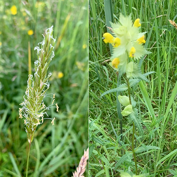 Meer in het midden staat er voornamelijk Glanshaver, Ruw beemdgras, Kropaar en op de meer open natte stukken Reukgras. Gewoon reukgras dankt zijn naam aan de toffee-achtige geur die veroorzaakt wordt door de stof cumarine. Dit ruik je vooral goed als je een aantal bladeren een kwartiertje in je broekzak houdt. De vegetatie is een voorbeeld van een kruidenrijk grasland met in het voorjaar Pinksterbloem, Scherpe boterbloem, Grote ratelaar en eind mei, begin juni een heleboel rietorchissen. Hoewel de Gewone rietorchis geen zeldzame plant is, is het toch wel opmerkelijk zo langs een fietspad binnen de ring van Amsterdam. Er staat wel veel hoog Riet dat de orchideeën kan verdringen. Een goed maaibeheer (laat maaien en afvoeren) is wel noodzakelijk. Het verbaast mij dat er nog zo veel staan tussen het hoge Riet. Maar ja, het plantje heet niet voor niets Rietorchis.