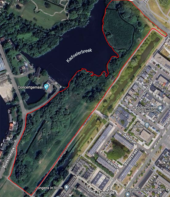Tussen het Vikingpad en de Buiksloterdijk en tussen de Bongerdbrug en de Kadoelerbreek en IJdoornlaan ligt een langgerekt terrein met een diepe sloot, dat we sinds kort het Kadoelerduin noemen. Kadoelerduin omdat delen van het gebied in het verleden zijn opgehoogd met kalkrijk zand en je kunt er planten en dieren aantreffen die ook in onze kustduinen voorkomen, zoals de Nachtegaal en het Konijn. En een klein deel is heuvelachtig. Wat het nog meer bijzonder maakt is dat dit terrein in het noordelijk deel grenst aan een veenmoerasbos, een oorspronkelijk veenweidegebied dat al jarenlang een natuurlijke successie-ontwikkeling laat zien. Langs de veel hogere Buiksloterdijk loopt parallel een diepe sloot die uiteindelijk uitloopt in de breek. Waar deze sloot begint zijn heuveltjes aanwezig in het bos, hoogstwaarschijnlijk ontstaan door stort van grond in het verleden. De dijk waarop de IJdoornlaan is aangelegd bestaat uit kalkrijk zand. Zo'n soort biotoop met al haar overgangen kwam 400 jaar geleden veel voor in het historische Noord-Hollandse kustlandschap.
