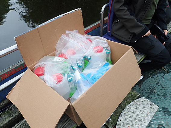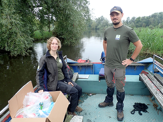 Op woensdag 4 september kwamen Kim en Kevin van Natuurlijke Zaken vanuit Ilperveld aan met hun dienstboot naar de Nieuwe Gouw om op verschillende eilanden in de Kadoelerbreek eDNA-monsters te gaan nemen. Ook Tello van de Adviesgroep voer een eindje mee. In dit geval zijn de eDNA-monsters grondmonsters, die op een bepaald oppervlak worden genomen met handschoenen aan; de plukjes grond worden geconserveerd in alcohol. De monsters worden vervolgens onderzocht op sporen van dieren zoals bijvoorbeeld de Noordse woelmuis of Waterspitsmuis. Tello en Kevin vertellen over deze excursie.