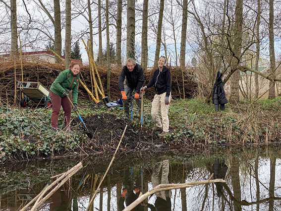 De ijsvogel wordt steeds vaker in deze buurt gezien. Er zijn zelfs nesten gevonden in de scheg. Maar er kan altijd meer gebeuren. Daarom hebben Manuela en Ingmar van het park, samen met Tello en Henk van de Kadoelerscheg, op 14 maart een ijsvogelwand gemaakt in Volkstuinpark de Bongerd. Dat was niet alleen nuttig, maar ook erg gezellig.