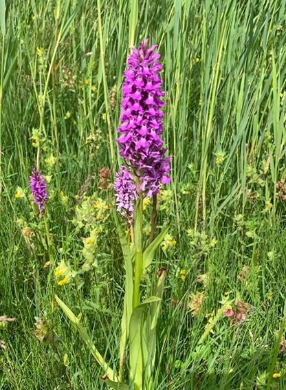 Hebben we nu echt de Brede orchis in Kadoelerscheg? Ik weet het niet zeker. De enige waarneming met duidelijk afstaande bladen en gevulde vlekken (van mij) is op 31 mei net op de grens met juni. De andere twee waarnemingen zijn van 16 en 21 mei, zonder duidelijke foto van het blad. Het zou een vroege Rietorchis kunnen zijn of een hybride met de Rietorchis. Op alle vindplaatsen staat namelijk ook de Rietorchis. Ik ga volgend jaar nog eens goed kijken in de maand mei.