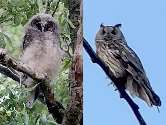 Toen ik op dinsdagavond rond 11 uur naar de schuur liep, schrok ik me kapot van een grote schim in de appelboom naast mijn tuintafel, op slechts een paar meter naast me! In de schemer zag ik aan de contouren en grootte meteen dat dit een uil moest zijn. Snel de nachtcamera gepakt en zittend op het bankje voor de schuur, staarden we een tijdje naar elkaar totdat hij/zij vlak over me heen vloog. Mijn hartslag flink verhoogd van enthousiasme, wat ongelofelijk bijzonder om zo dicht bij zo’n prachtig wild dier te zijn. Als klein meisje was de Oehoe mijn lievelingsdier nadat ik die ooit had gezien, en nu zat er gewoon een mini-variant in de tuin.
