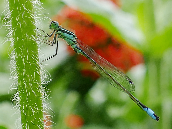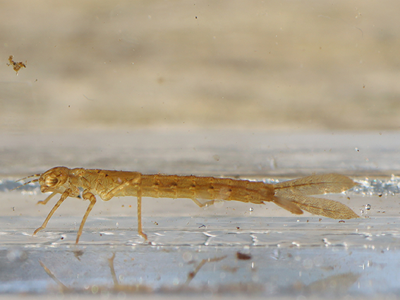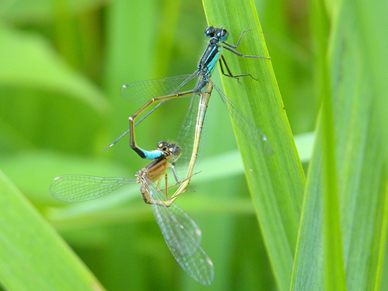 Het lantaarntje is een waterjuffer, een soort kleine libel. De larven leven in de sloot. In het voorjaar kruipen ze langs een stengel omhoog, boven het water. Als ze zijn opgedroogd, kruipt de volwassen waterjuffer uit het oude huidje.